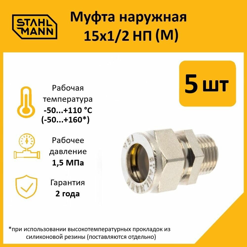 Комплект. Муфта Stahlmann (M) 15х1/2 НП EF (5 шт.)
