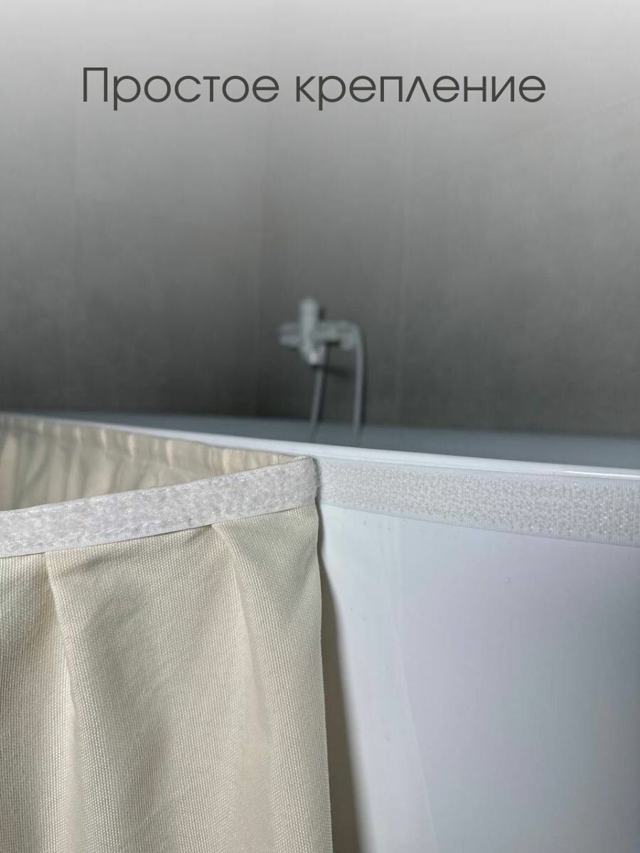 | Дополнительная информация | выполнен из водоотталкивающей ткани (полиэстер 100%), легко крепится под ванну на липкую ленту и отстегиватся при необходимости |