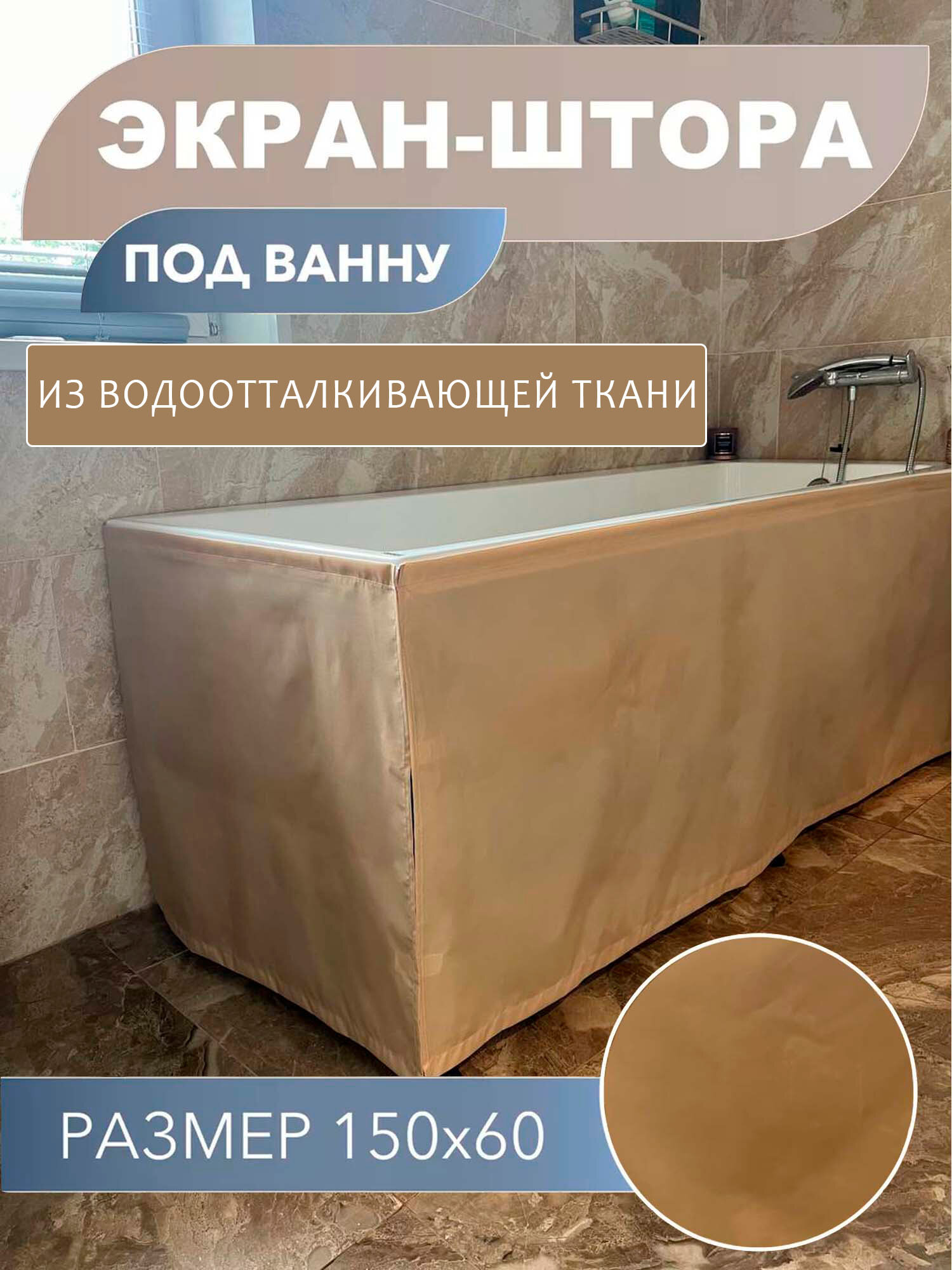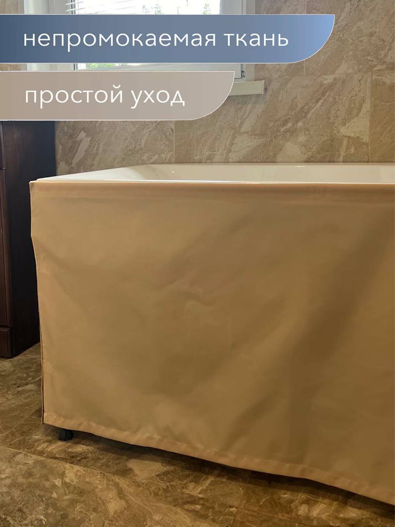 Экран под ванну из водоотталкивающей ткани, бежевый, размер 160*60 см, крепление не требует монтажа 1 180 ₽