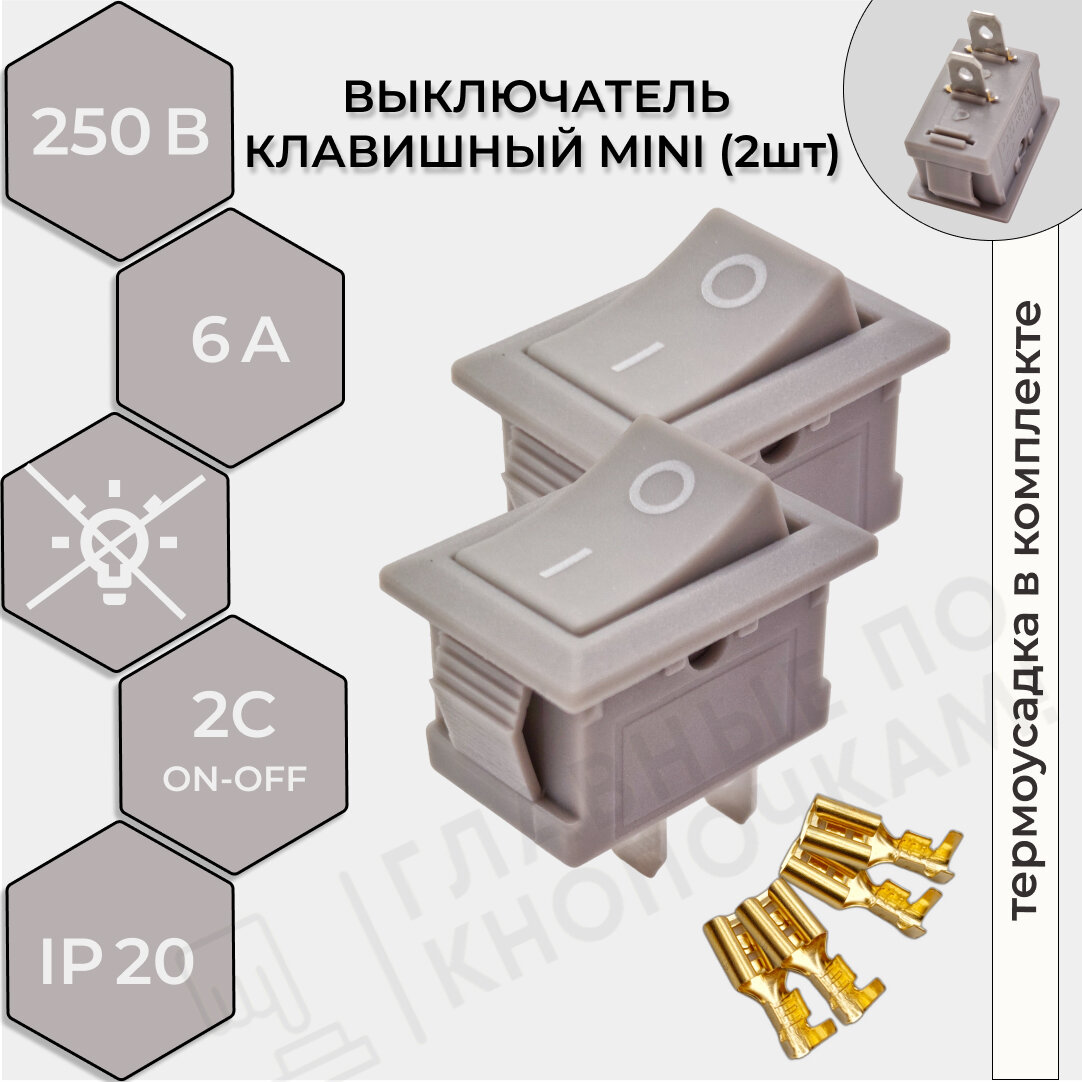 Выключатель клавишный (2 шт) 36-2113 серый Mini 250V 6А (2с) ON-OFF REXANT (комплект с клеммами и термоусадкой) информация: