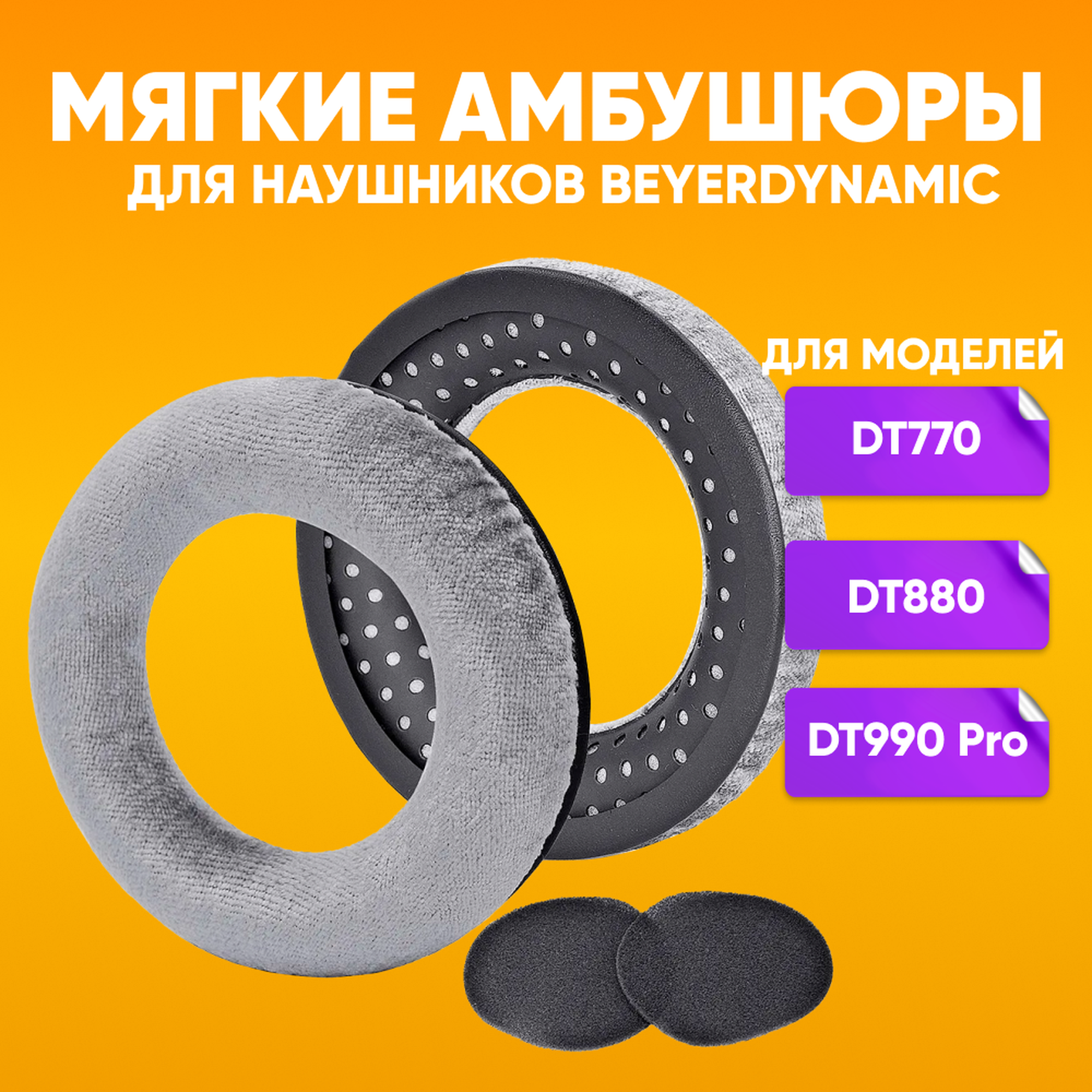 Мягкие амбушюры для наушников Beyerdynamic DT880, DT990, DT990 Pro / серые информация: