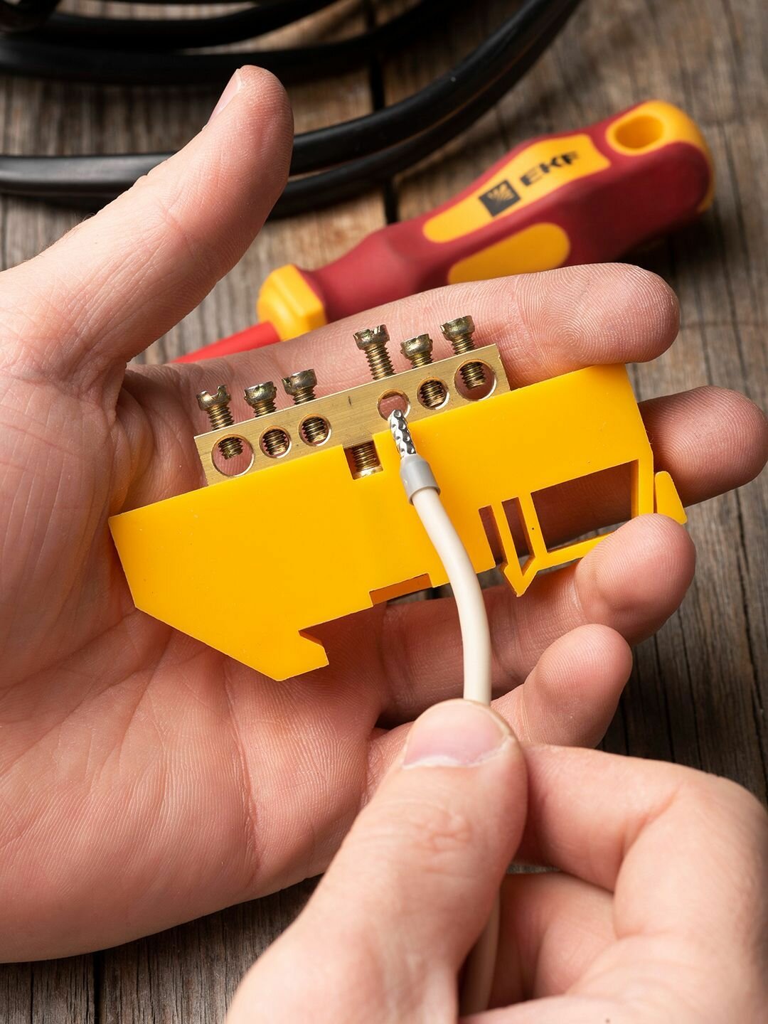 Шина нулевая "0" N (6х9мм) 6 отверстий, латунь, желтый изолятор на DIN-рейку, EKF PROxima - 1 шт информация: