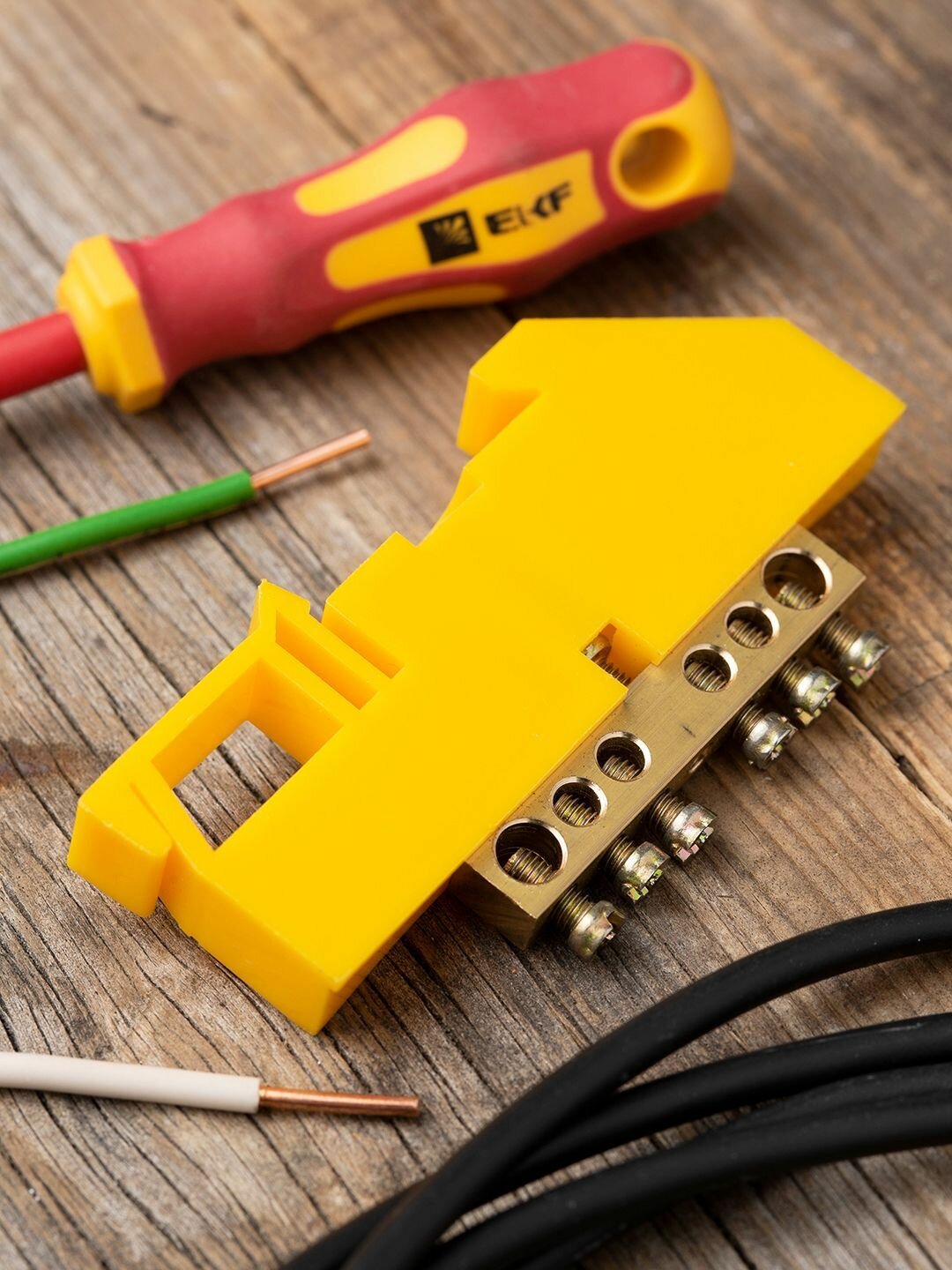 Отзывы на Шина нулевая "0" N (6х9мм) 6 отверстий, латунь, желтый изолятор на DIN-рейку, EKF PROxima - 1 шт