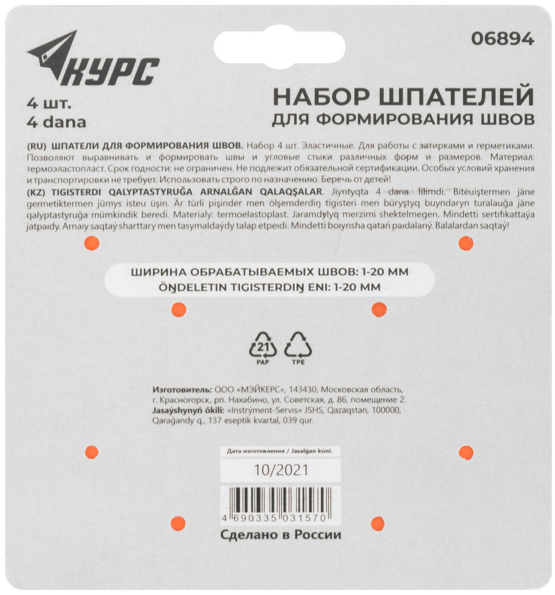 Шпатель для работы с затирками и герметиками, набор 4 шт курс информация: