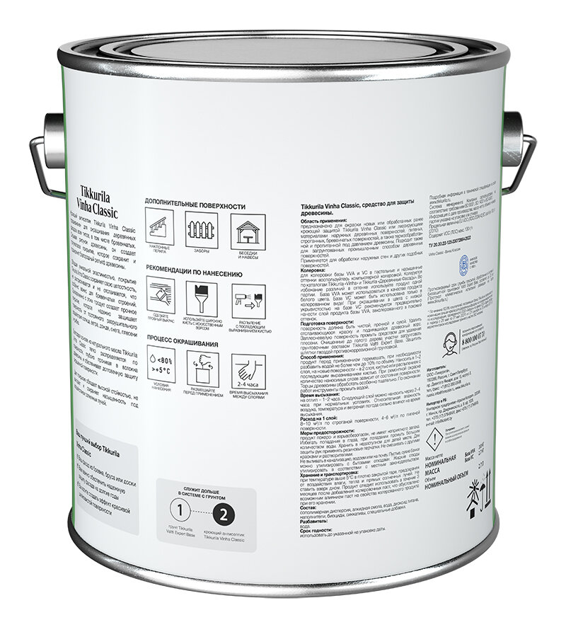 TIKKURILA VINHA CLASSIC / Тиккурила Винха Классик антисептик кроющий водоразбавляемый полуматовый База А (белый) 2,7л 5 823 ₽