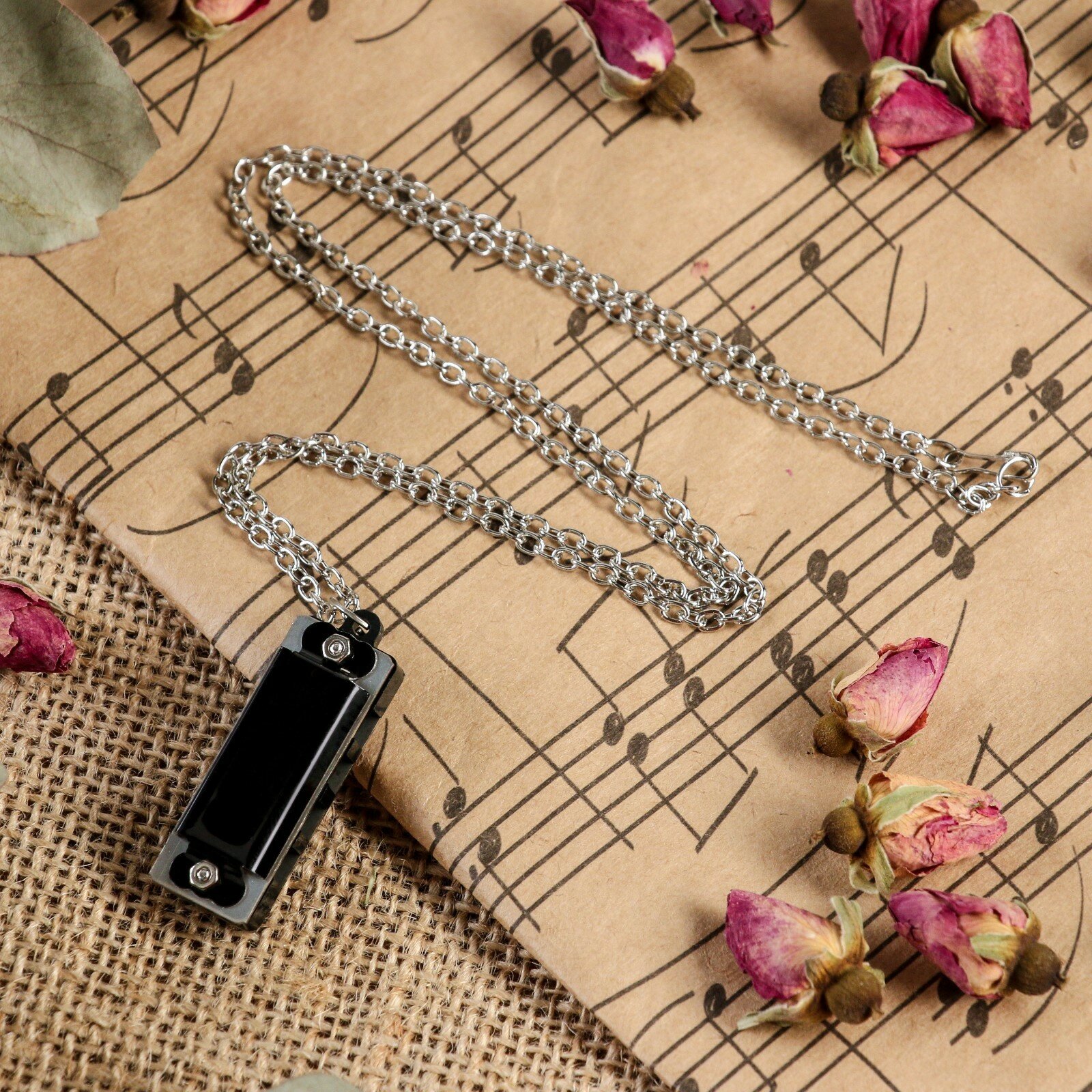 10 цен на Губная гармошка Music Life 4 отверстия, 8 тонов, 3,5х1,5х1см, цепь 28см, черная 9406935