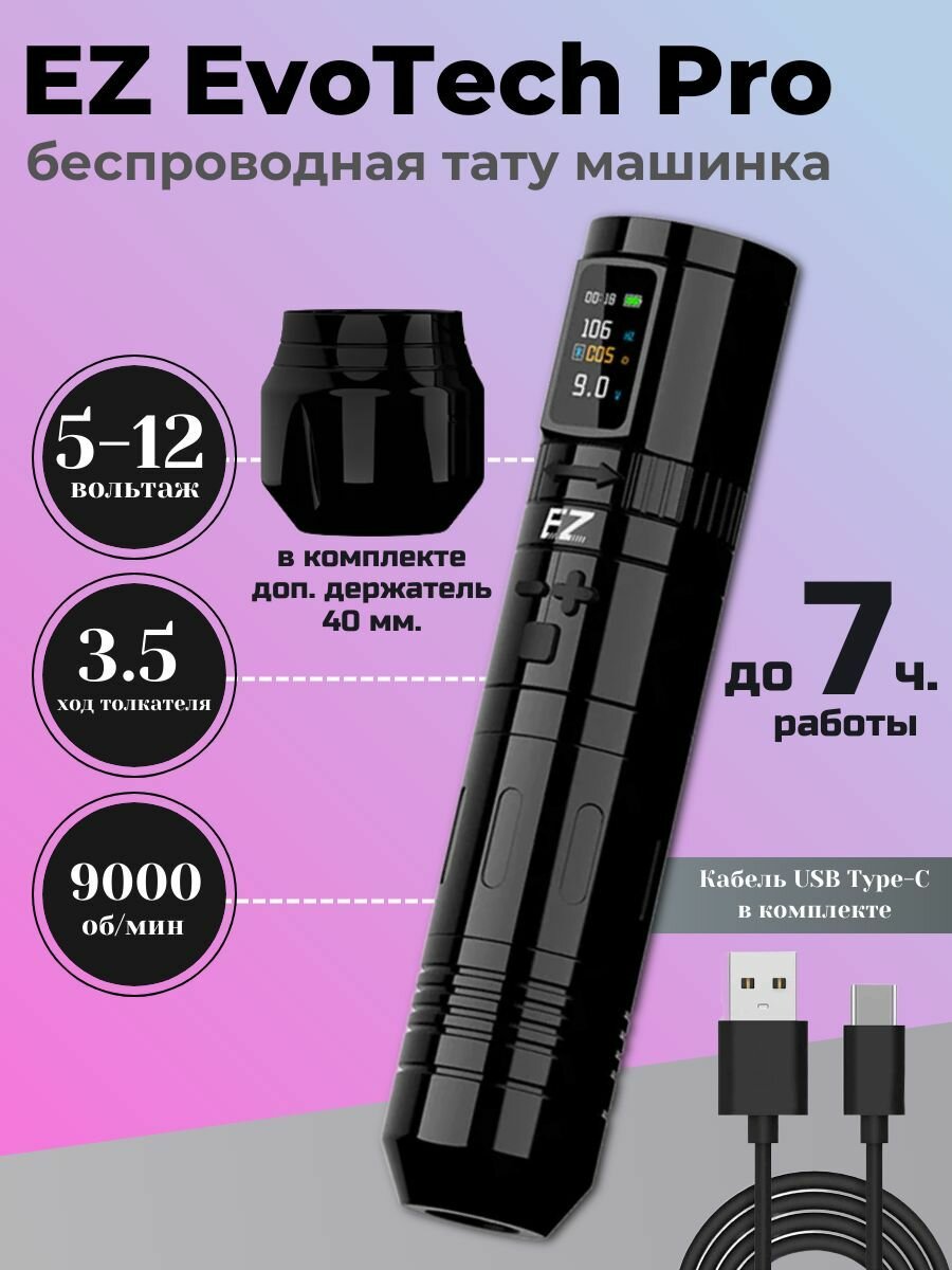 Беспроводная тату машинка для перманентного макияжа, татуажа EZ EvoTech Pro Black информация: