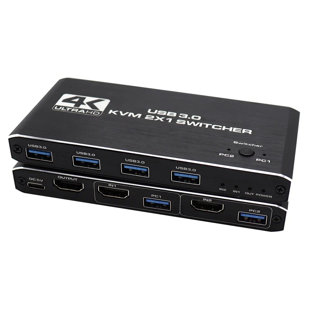 Отзывы на Квм-переключатель 4K, сплиттер, 2-портовый HDMI USB HDMI-совместимый Plug and Play для совместного монитора, клавиатуры и мыши, адаптивный HDCP принтер, Black