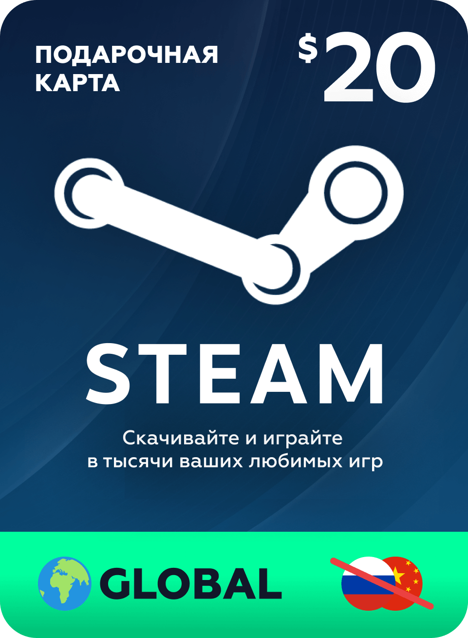 Пополнение кошелька Steam на 20 USD / Gift Card $20 Global (Глобальный ключ активации) / не подходит для России и Китая информация: