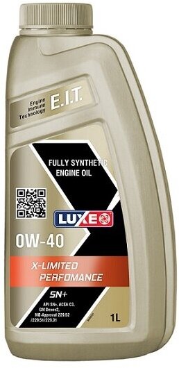 Моторное масло LUXE X-LIMITED PERFORMANCE 0w-40 SN+ (4л) API SN+, ACEA C3, GM Dexos2,