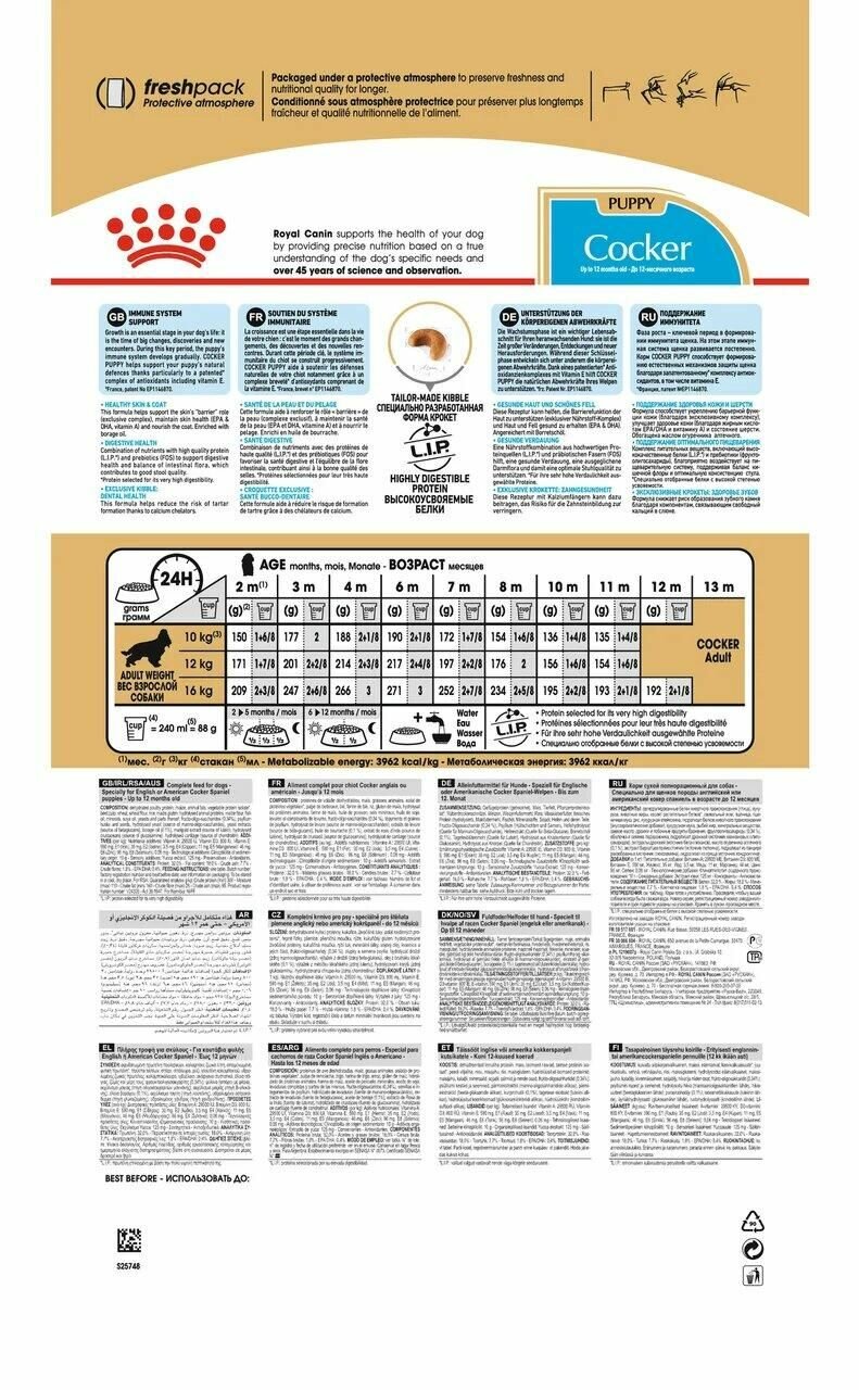 Royal Canin Cocker Adult Корм сухой для взрослых собак породы Кокер Спаниель от 12 месяцев, 3 кг информация: