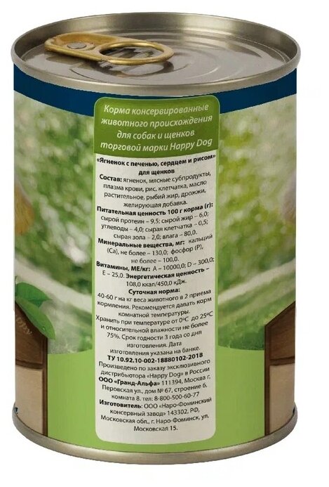 Happy dog Консервы для щенков Ягненок с печенью сердцем и рисом 0,41 кг 51119 (6 шт) 2 518 ₽