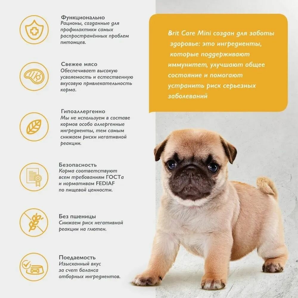 BRIT CARE Mini, Сухой корм с индейкой для щенков и молодых собак мини пород "Puppy&Junior. Healthy Growth",1.5кг информация: