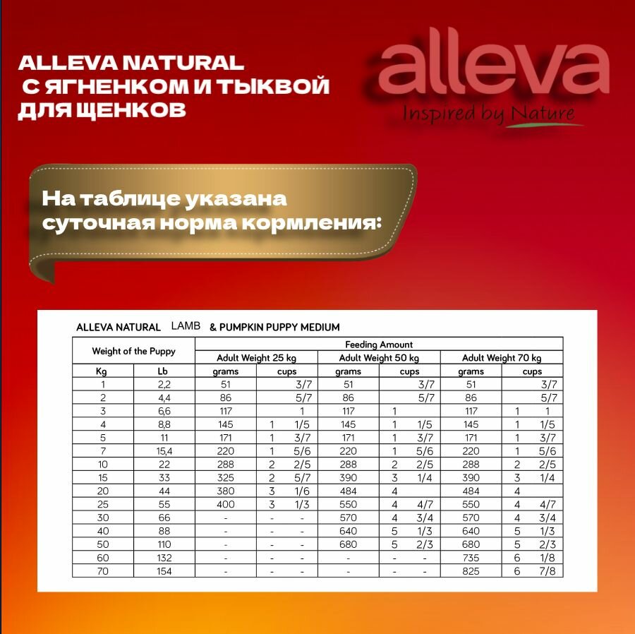ALLEVA NATURAL Корм для щенков с ягненком и тыквой. Для всех пород 12 кг 15 352 ₽