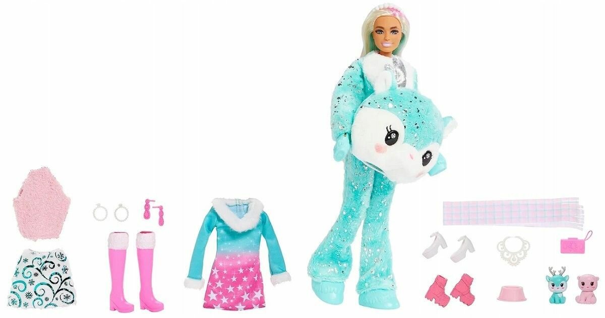 | Комплектация | 1 кукла, 1 мини-питомец, плюшевый костюм для Барби, аксессуары. |