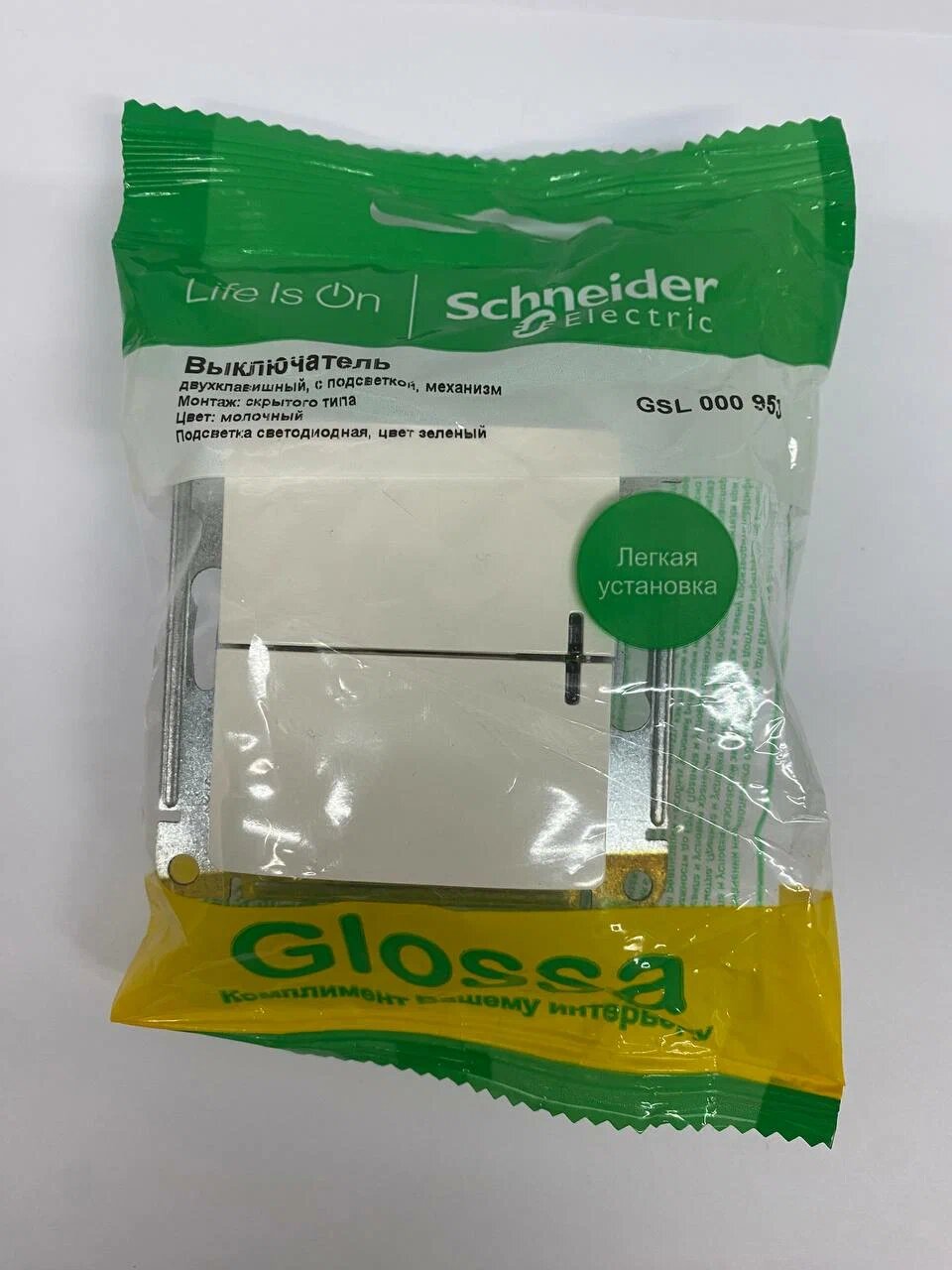 GLOSSA 2-клавишный выключатель с подсветкой,сх.5а,10AX, механизм, молочный, SCHNEIDER ELECTRIC GSL000953 (1 шт.)
