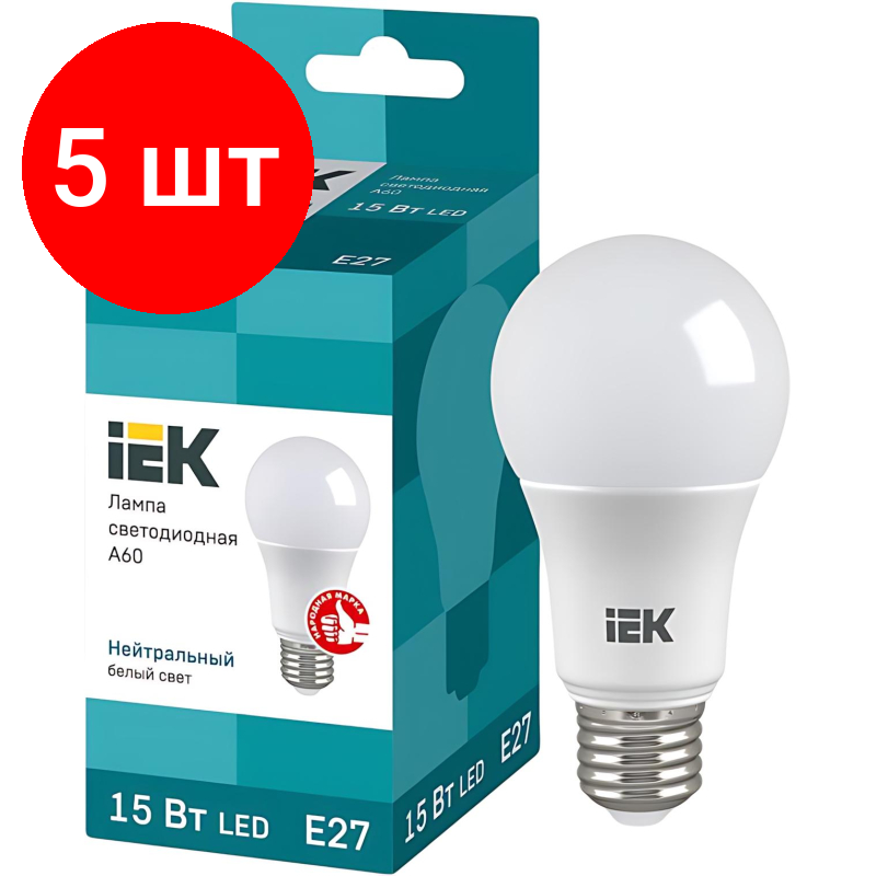 Комплект 5 штук, Лампа светодиодная Eco 15Вт A60 груш. 4000К E27 IEK LLE-A60-15-230-40-E27 информация: