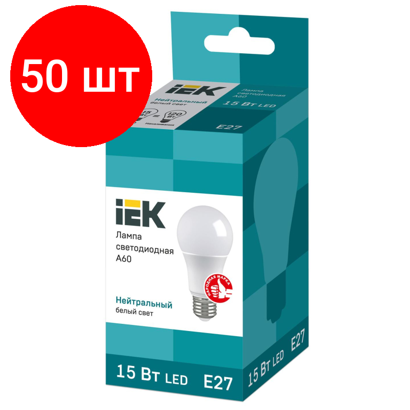 Отзывы на Лампа светодиодная ECO A60 шар 15Вт 230В 4000К E27 | код. LLE-A60-15-230-40-E27 | IEK (50шт. в упак.)