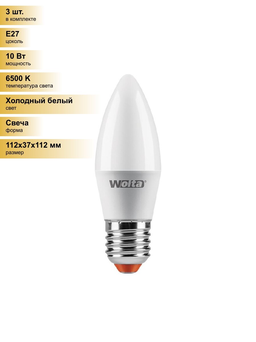 (3 шт.) Светодиодная лампочка Wolta лампа св/д свеча C37 E27 10W(900Lm) 6500K 6K 112X37 25WC10E27 Холодный белый. Цоколь E27 информация: