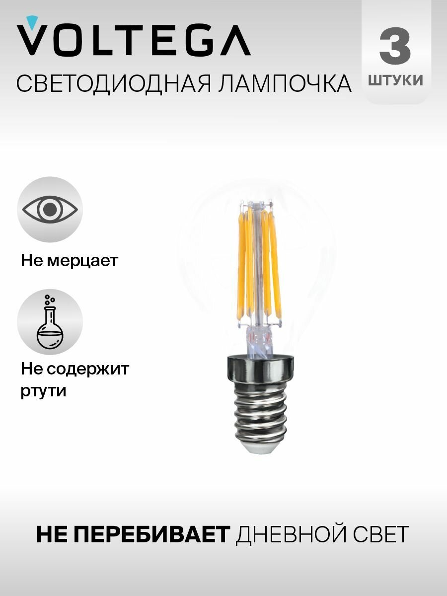 Отзывы на Лампочка светодиодная E14 форма груши 9W нейтральный белый свет Voltega Crystal Graphene Globe 4000K упаковка 3 шт.