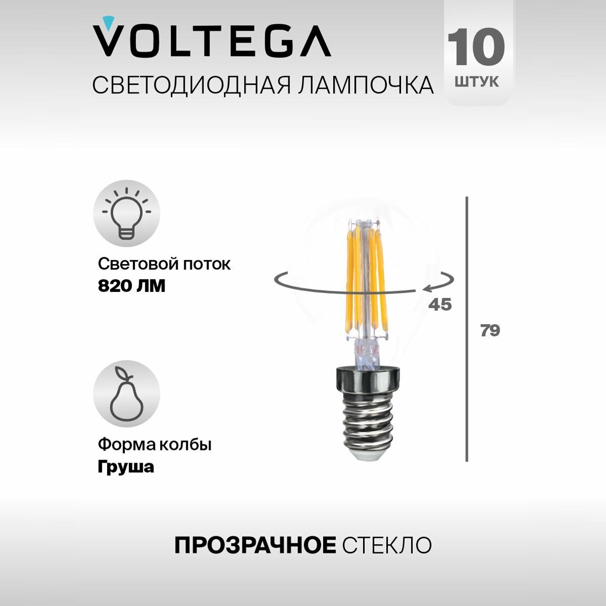 Отзывы на Лампочка светодиодная E14 форма груши 9W нейтральный свет Voltega Crystal Graphene Globe 4000K упаковка 10 штук
