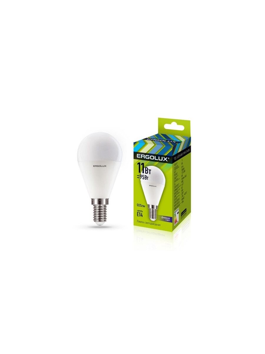 (15 шт.) Светодиодная лампочка Ergolux шар G45 E14 11W(915lm 220°) 4500K 4K матовая 92x45 LED-G45-11W-E14-4K Нейтральный белый. Цоколь E14 2 054 ₽