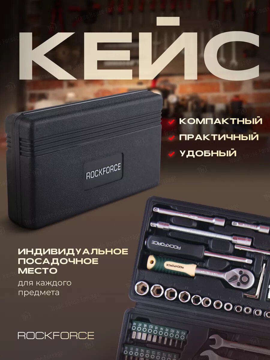 Набор инструмента RF-38901: 1/2"&1/4"DR с 6-гранными головками 122пр. ROCKFORCE 15 030 ₽