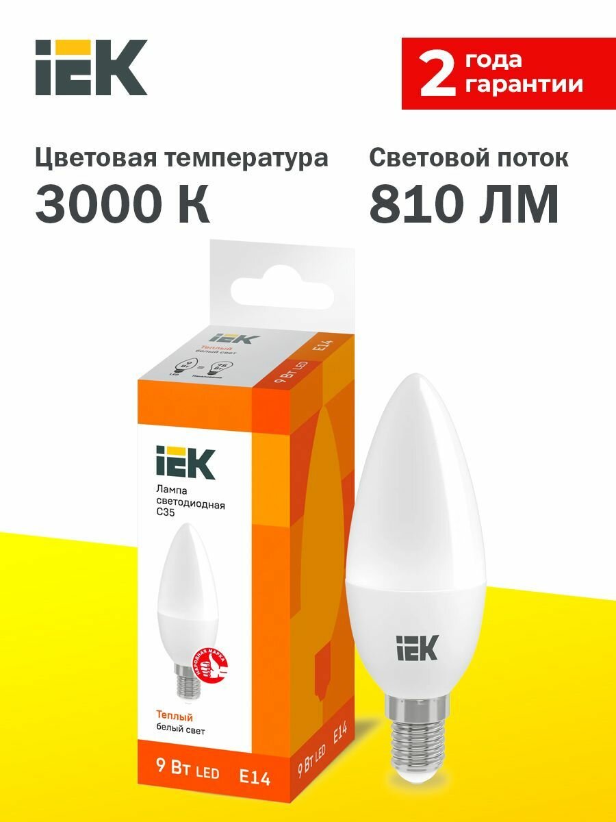 Отзывы на Светодиодная лампочка E14 IEK, C35 свечка, мощность 9Вт, 230В, 3000К