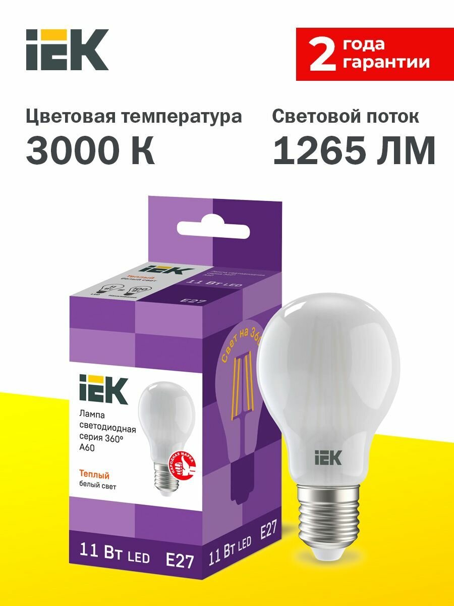 Лампа светодиодная A60 шар матов. 11Вт 230В 3000К E27 серия 360° IEK LLF-A60-11-230-30-E27-FR (1 шт.)