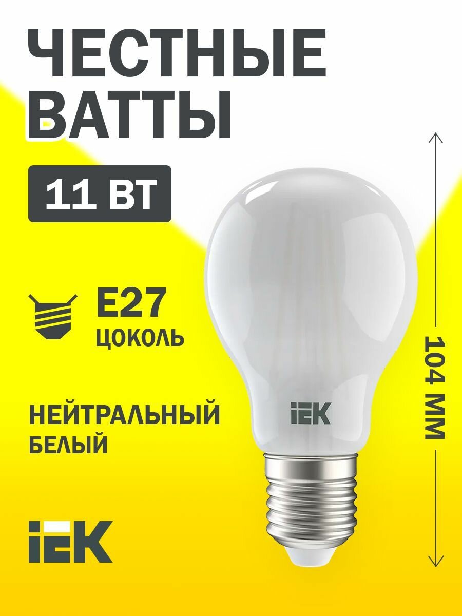 10 цен на Светодиодная лампа IEK, 11Вт, E27, A60 шар матовая, 230В, 4000К