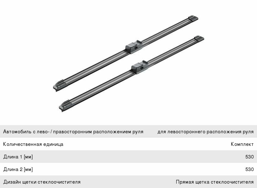 Щетка стеклоочистителя AUDI TT (03-06) 530530мм комплект Aerotwin (Уценка) BOSCH информация: