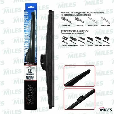 Щетка С/О Зимняя Miles 13/330Мм + Адаптеры Hook 9X3/9X4 Cww13ac Miles арт. CWW13AC