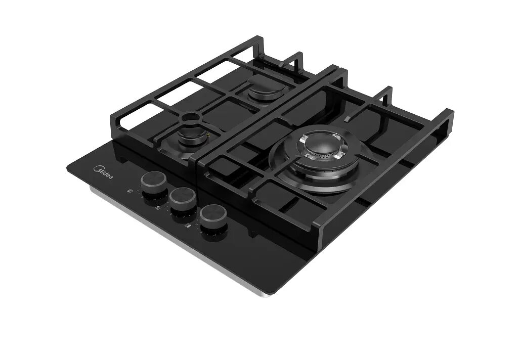 10 цен на Варочная панель Midea MG449TGB, газовая, чугунные решетки, 3 конфорки, газ контроль, чёрная