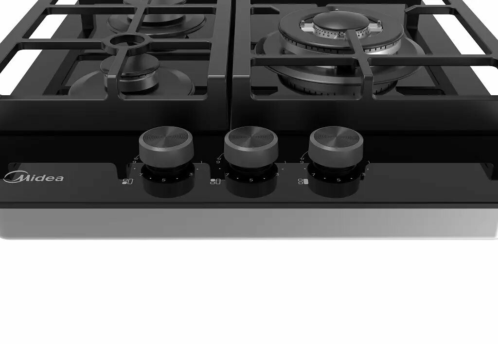 Отзывы на Варочная панель Midea MG449TGB, газовая, чугунные решетки, 3 конфорки, газ контроль, чёрная