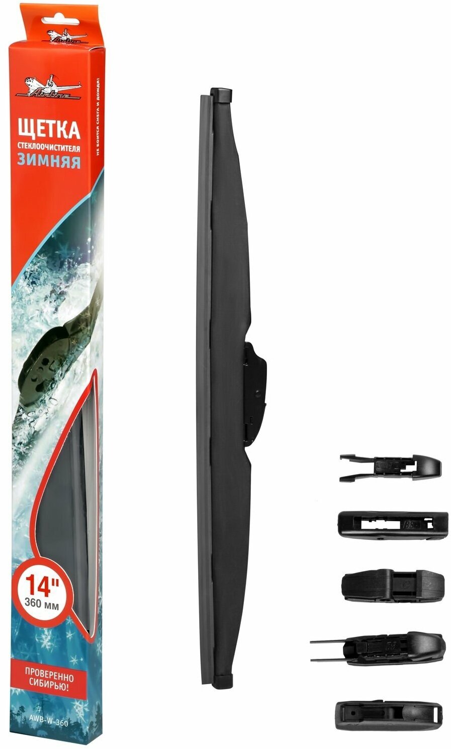 Щетка стеклоочистителя 360 мм (14") зимняя, 4 адаптера AIRLINE