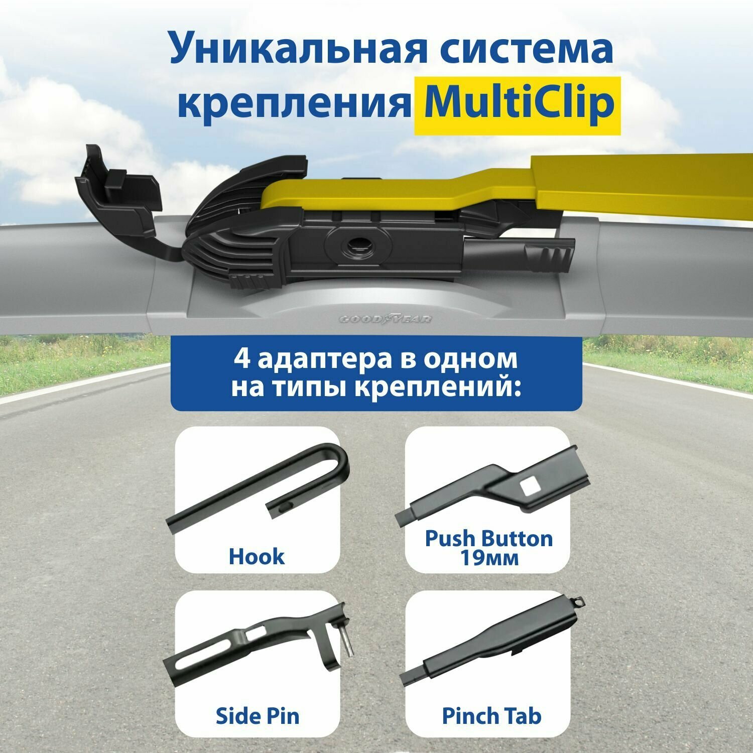 Щетка стеклоочистителя бескаркасная Goodyear FRAMELESS 19"/48 см MULTICLIP