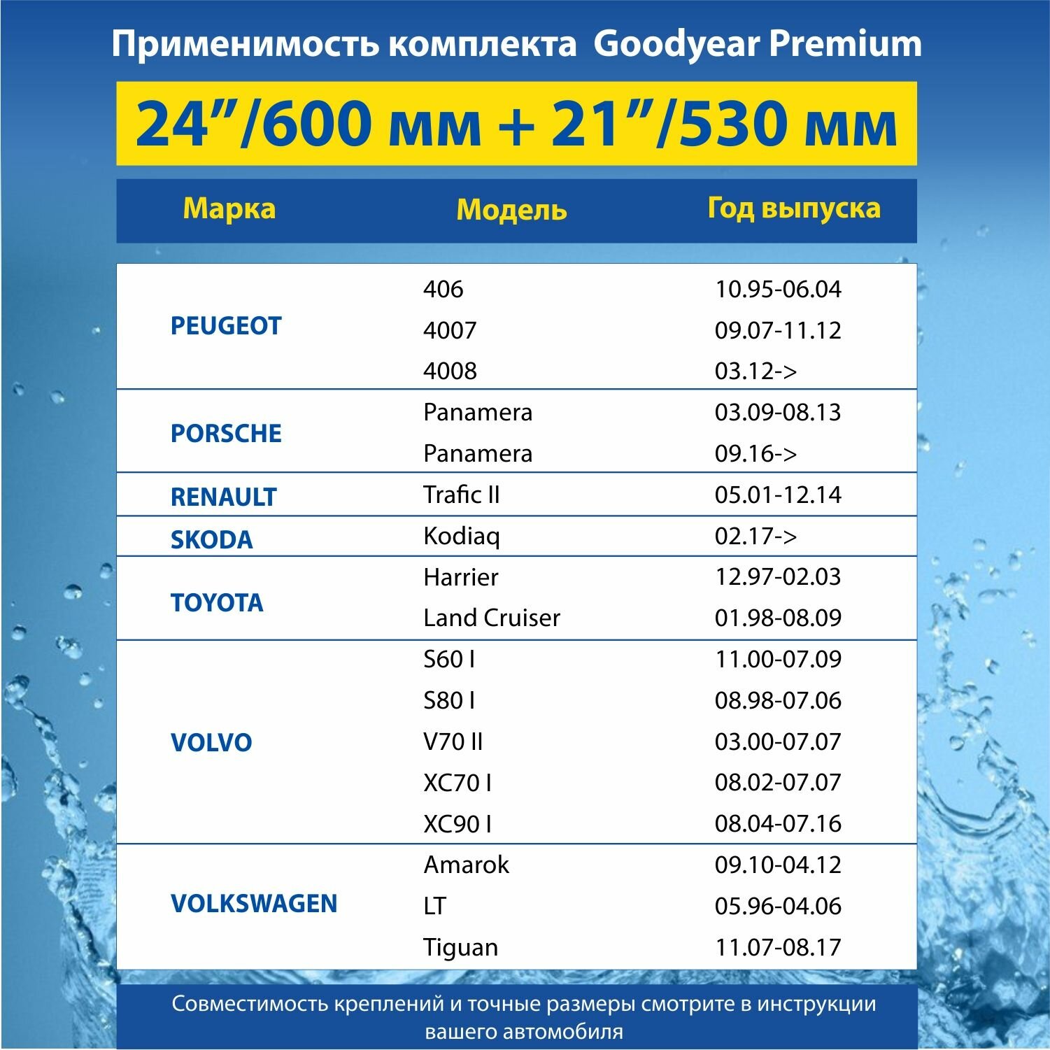 10 цен на 2 Щетки стеклоочистителя в комплекте (60+53 см), Дворники для автомобиля GOODYEAR для SKODA Kodiaq(17-нв), LEXUS LX(07-нв), HONDA Accord(8-15)