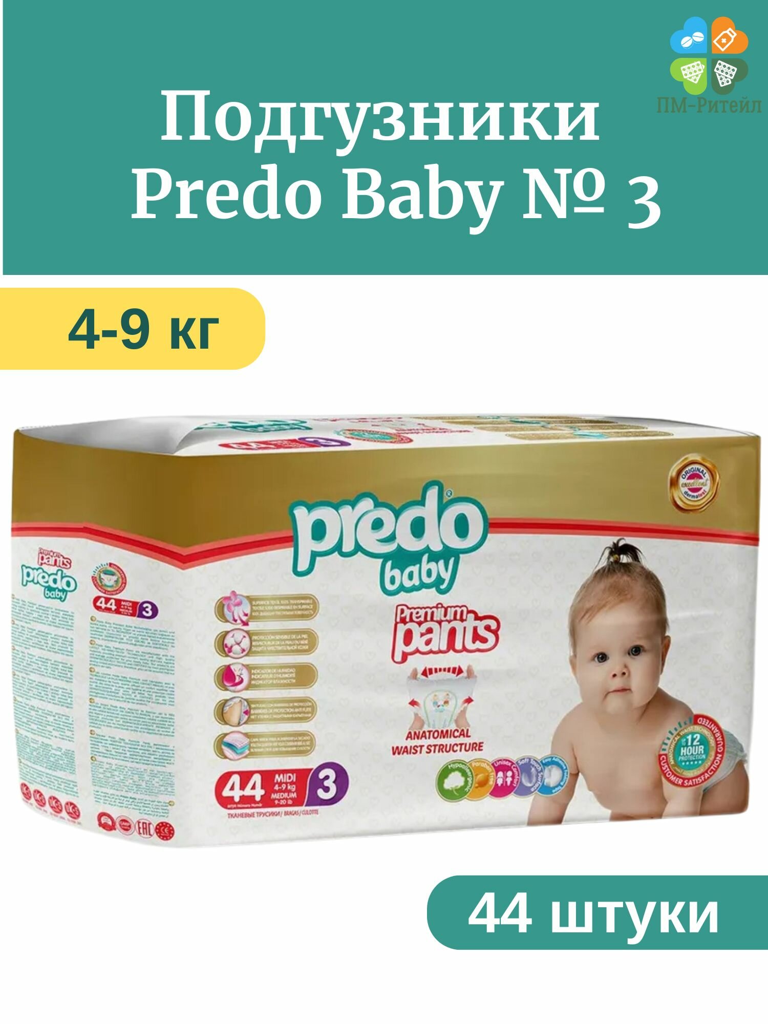 Подгузники-трусики Predo Baby № 3 (4-9 кг.) для чувствительной кожи, 44 шт информация: