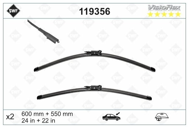 SWF / 119356 / Комплект Щеток стеклоочистителя VISIOFLEX бескаркасный 600мм/24`+550мм/22` (Боковой зажим)