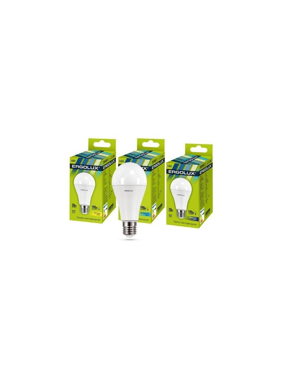 Лампа светодиодная E27, 20 Вт, 190 Вт, груша, 4500 К, свет холодный белый, Ergolux