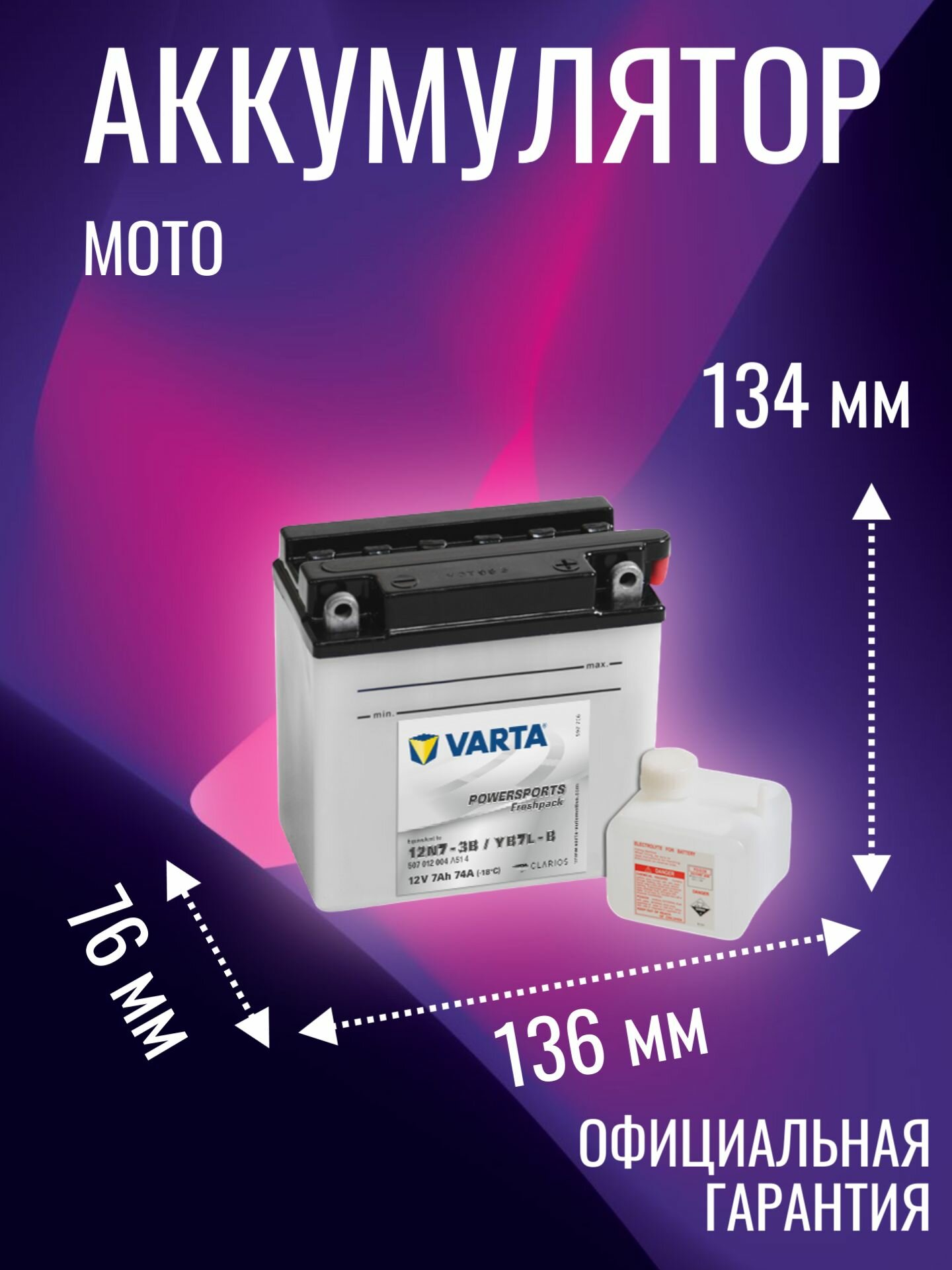 Аккумулятор для мототехники Varta Moto 12N7-3B/YB7L-B 507 012 004 12В 7Ач 74А информация: