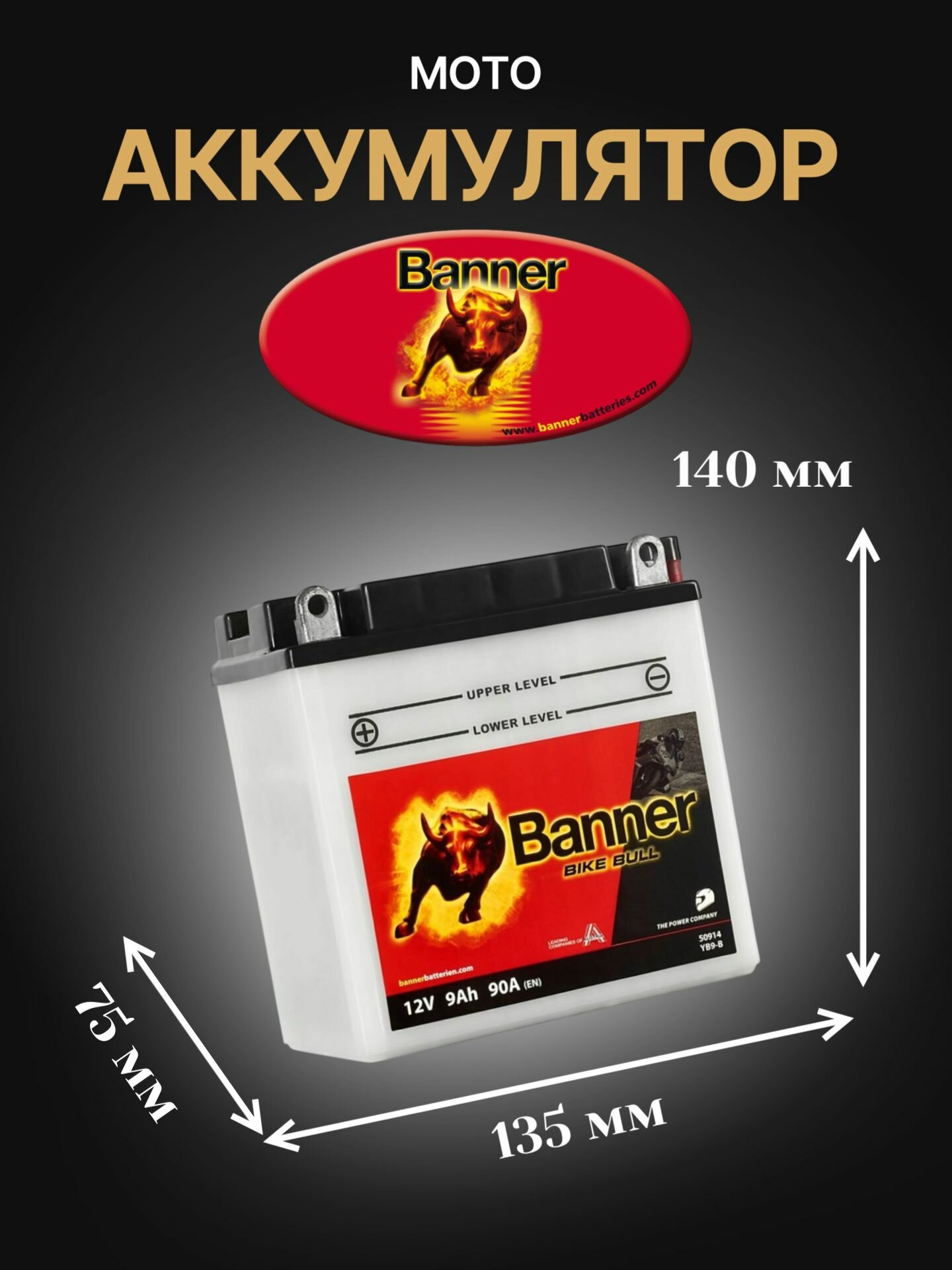 Аккумулятор мотоциклетный Banner Bike Bull YB9-B 12В 9Ач 90А информация: