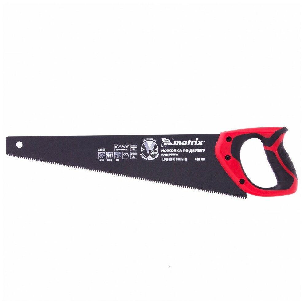 Ножовка MATRIX 23550 по дереву 450мм 7-8 tpi зуб-3d каленый зуб тефл.покр.полотна 2-х комп..рук-ка
