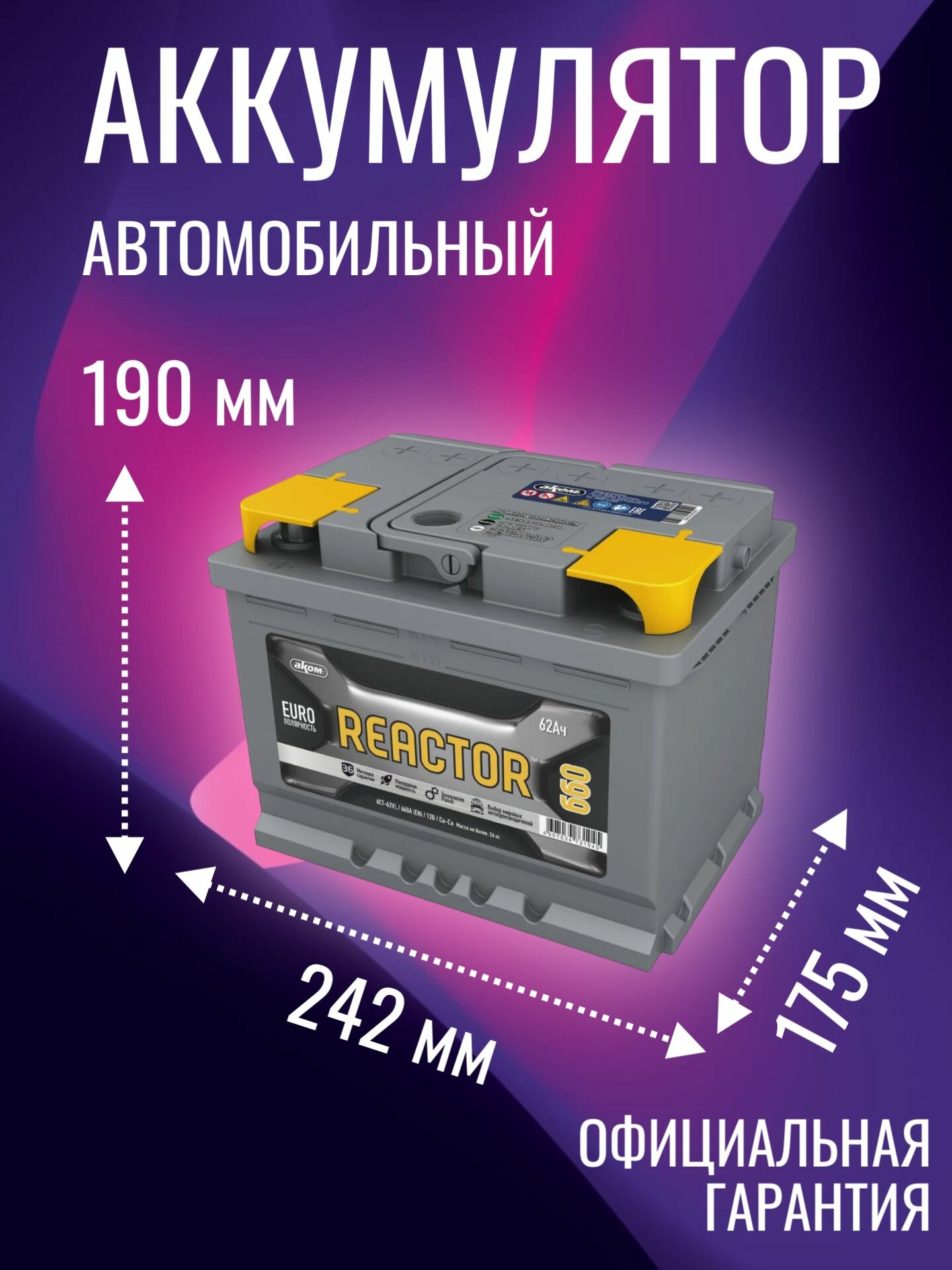 10 цен на Аккумулятор автомобильный REACTOR 62 R+ 12В 62Ач 660А