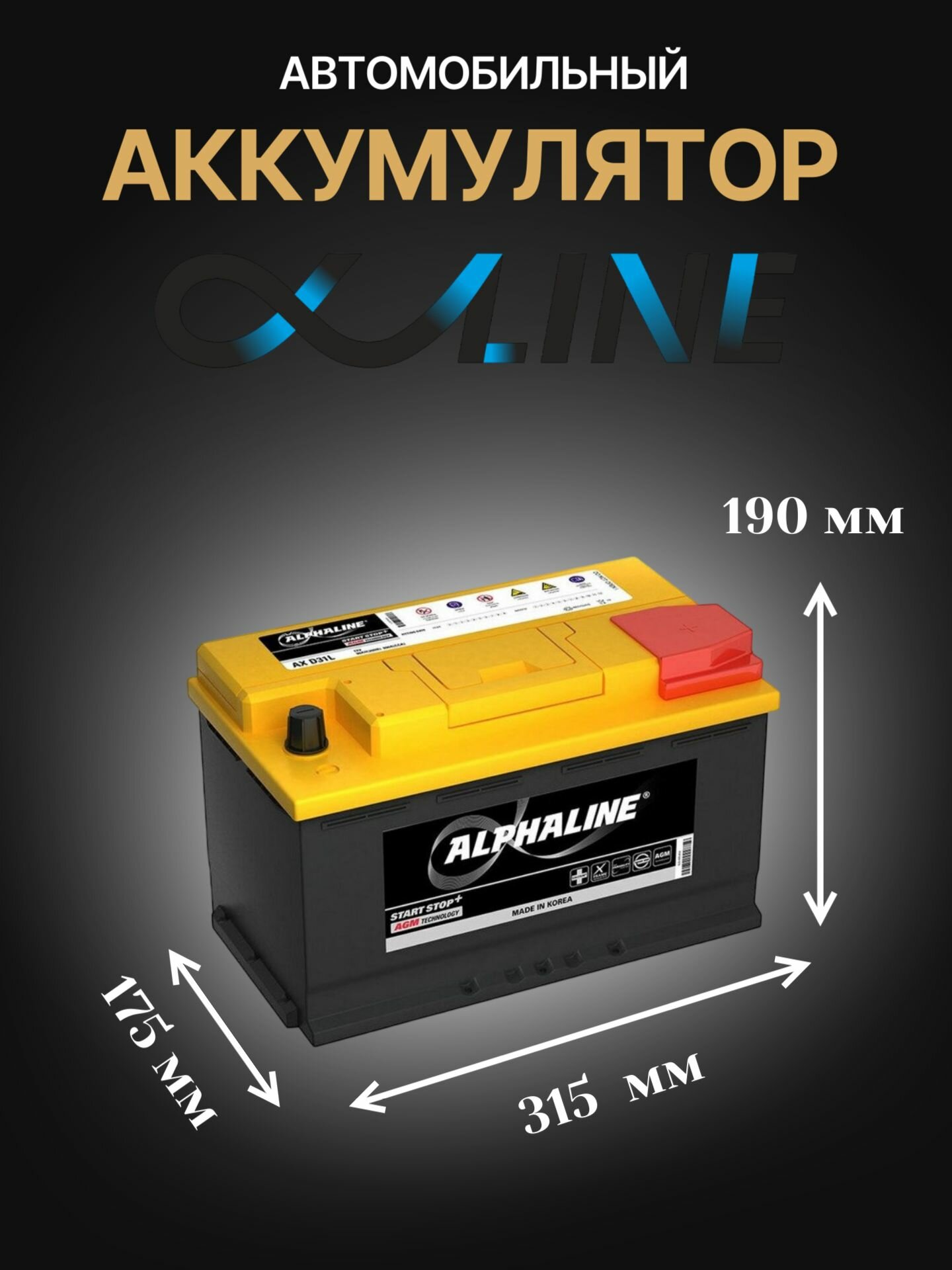 Аккумулятор автомобильный AlphaLINE AGM AX 58020 6СТ-80 обр. 315x175x190