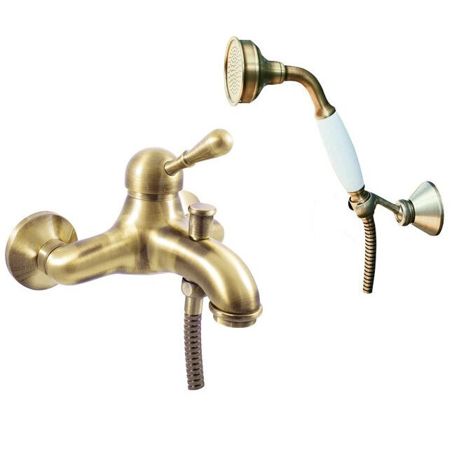 Смеситель RAV Slezаk Labe для ванной, с душевым комплектом, лейка метал., держатель подвижный, бронзовый