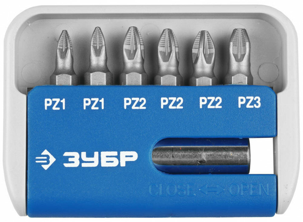 Биты ЗУБР с магнитным адаптером, хромомолибденовая сталь S2, PZ1(2шт), PZ2(3шт), PZ3(1шт), 7 пред