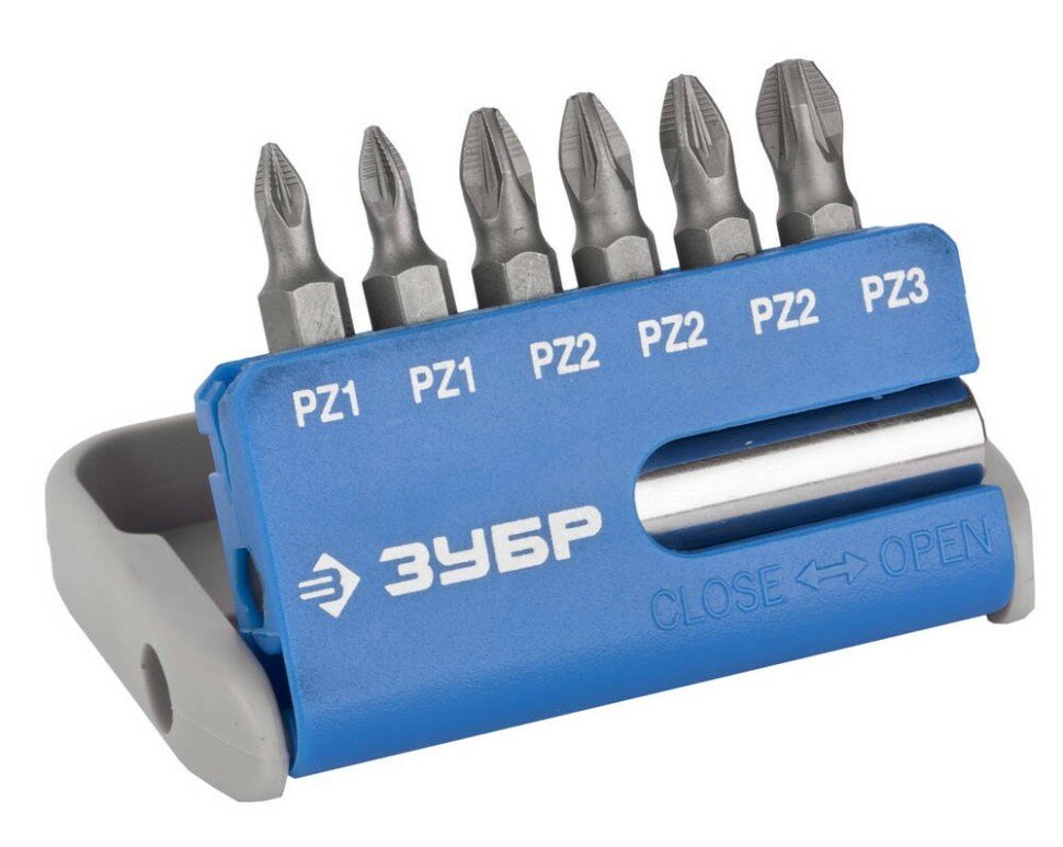Набор ЗУБР: Биты с магнитным адаптером, хромомолибденовая сталь S2, PZ1(2шт), PZ2(3шт), PZ3(1шт), 7 предметов (26042-H7)
