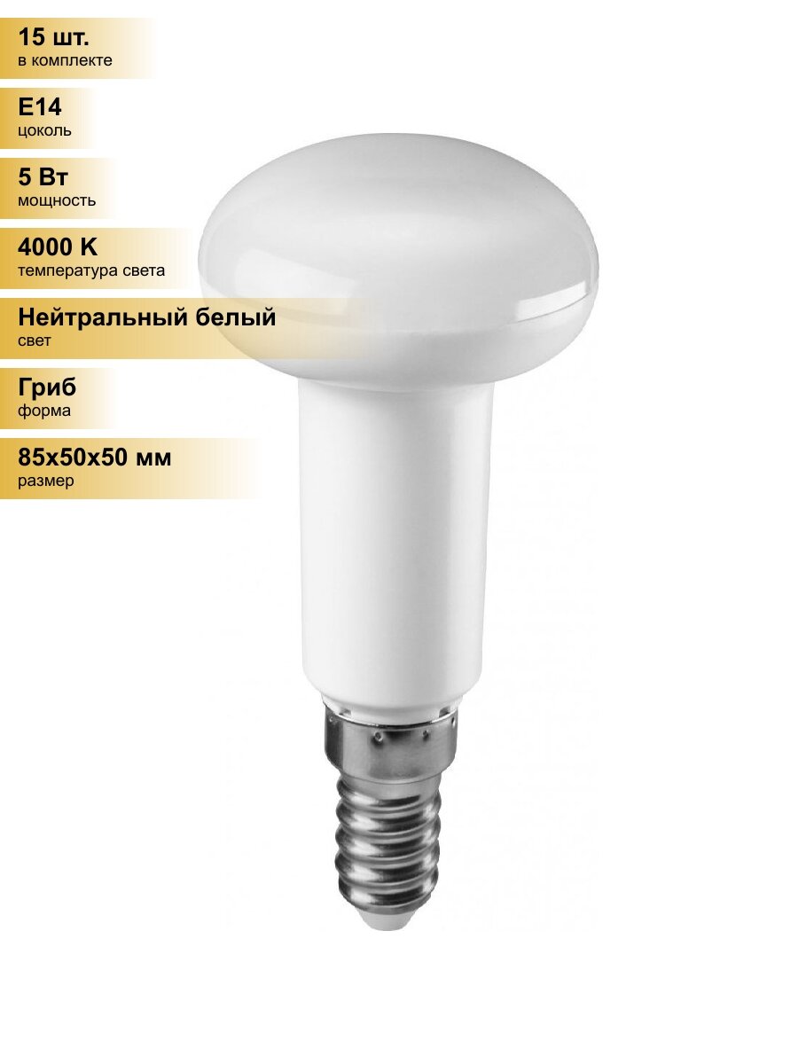 (15 шт.) Светодиодная лампочка онлайт R50 E14 5W(420Lm) 4000K 4K 85x50 ОLL-R50-5-230-4K-E14 71652 Нейтральный белый. Цоколь E14 информация: