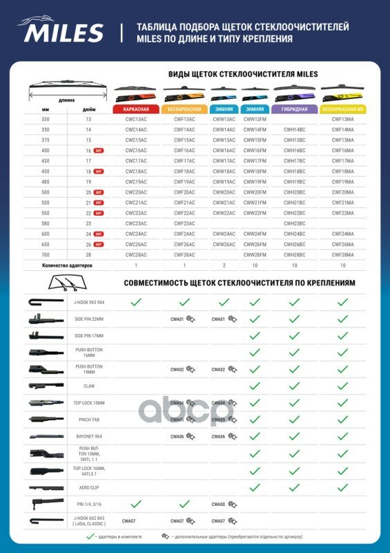 Щетка С/О Зимняя Miles 22/550Мм + Адаптеры Hook 9X3/9X4 Cww22ac Miles арт. CWW22AC